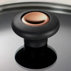 - Black soft-touch lid knob with copper accent