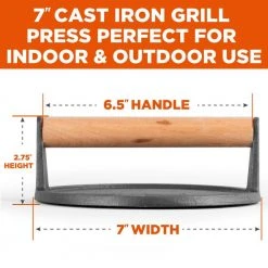 Cook delicious, mouthwatering food with this COMMERCIAL CHEF cast iron press. Use you’re your favorite grilled foods such as chicken breasts, steaks, hamburgers, sandwiches, paninis and even bacon. with this griddle press cast iron (2.92 lbs.), you can artfully flatten your food to ensure all sides are cooked evenly with stylish grill marks. Our chef press is tough and sturdy as it’s made from quality cast iron ideal for your stove or grill. Additionally, this meat press cast iron comes pre-seasoned, ensuring it won’t rust and will stay durable even after years of use. Simply handwash with gentle detergent and dry with a towel. At 7 inches wide, this chef press has a wide circumference that covers more surface area so that you can cook any type and size of meat. Make your food more scrumptious with this COMMERCIAL CHEF cast iron grill press.