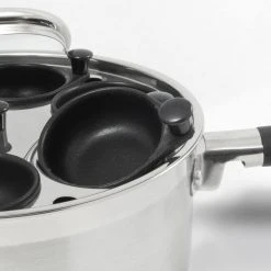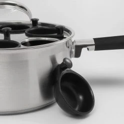 This professional stainless steel egg poacher with non-stick coated egg cups, is perfect for preparing that Sunday brunch. Invite your friends and family over for perfectly poached eggs. Features stay cool handle and knob and a vented glass lid for easy monitoring.