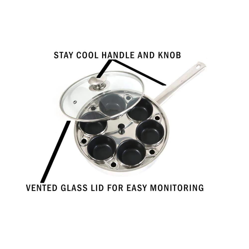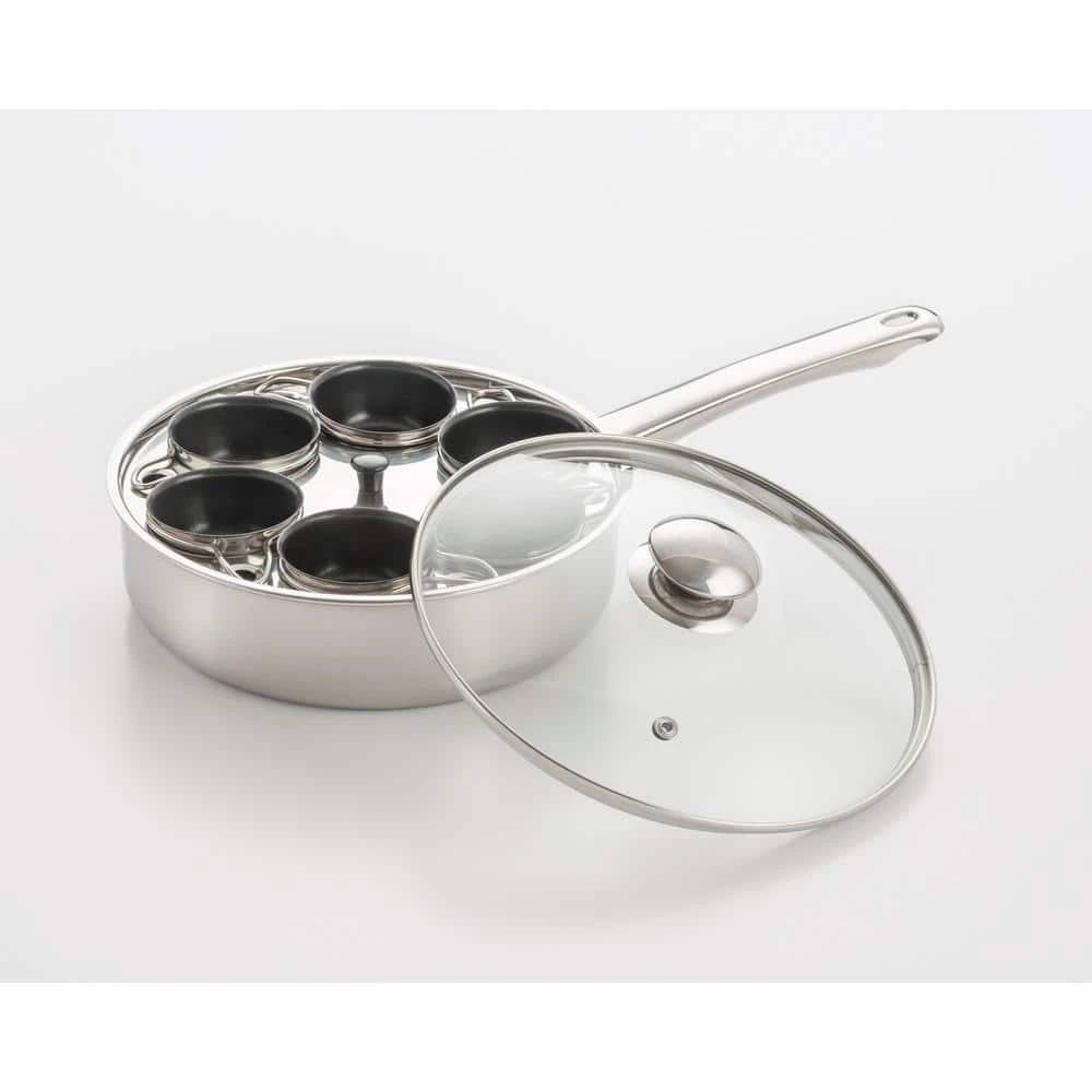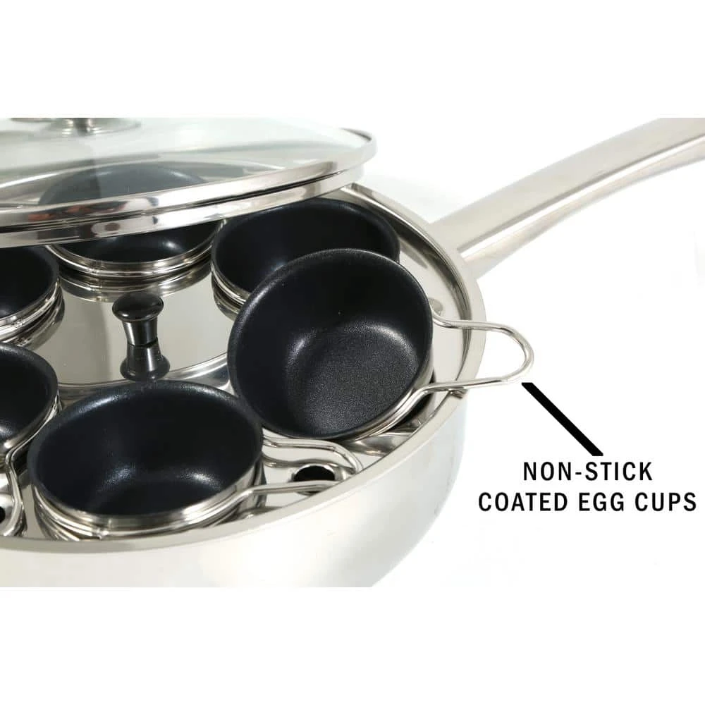 This 18/10 stainless steel egg poacher with non-stick coated egg cups, is perfect for preparing that Sunday brunch. Invite friends and family over for perfectly poached eggs. Features stay cool handle and knob and a vented glass lid for easy monitoring.