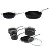 - Cookware set includes: 8 in. and 11 in. frypans, 2 qt. saucepan with lid, 3 qt. saucepan with lid, 3.3 qt. saute pan with lid, and 5 qt. stockpot with lid