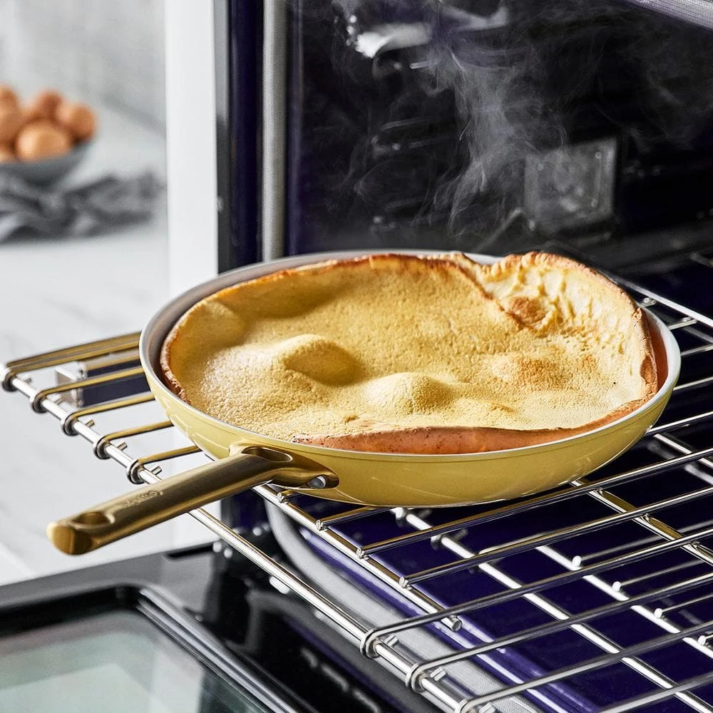World-class performance meets minimalist chic in the GreenPan Reserve collection. These eye-catching pans are designed to stay beautiful- the collection’s duo forged hard anodized aluminum construction makes each of the pots and pans extra tough and scratch-resistant while also promoting even heat distribution for consistent cooking. Each pan features our Thermolon healthy ceramic nonstick coating, reinforced with diamonds to make it ultra-durable and heat responsive. Our ceramic nonstick coating helps you make any meal healthier because it’s free of PFAS, PFOA, lead, and cadmium and will never release toxic fumes, even when overheated. Durable glass lids give you an easy view of your meals and the matte stainless-steel handles make each pan easy to take from the stovetop to the oven. Dishwasher safe. Oven safe up to 600°F. This cookware set includes 8 in. and 11 in. Frypans, 2 qt. Saucepan with lid, 3 qt. Saucepan with lid, 3.3 qt. Saute pan with lid, and 5 qt. Stockpot with lid. Limited lifetime warranty.
