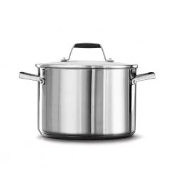 The Select by Calphalon Stainless Steel 5 Qt. Dutch Oven with Cover is a versatile pan that can be used for a variety of meals such as hearty stews or casseroles. Built to last, this durable stainless steel pan has an impact-bonded aluminum base that heats evenly to ensure delicious food at every meal. Going from the stovetop to the oven is easy with the secure comfort-grip handles. This Dutch oven is dishwasher safe for easy cleanup and oven safe, too. Includes tempered glass cover.