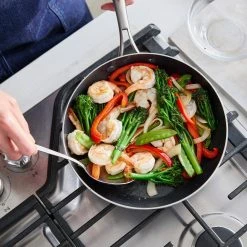 - Frypan set includes: 9.5″ and 11″ frypans