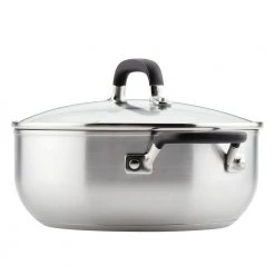 Ignite kitchen creativity and experience rich flavor with the KitchenAid Stainless Steel Casserole with Lid. Crafted from durable stainless steel with a layer of heat-conductive aluminum in the base, this versatile pot is designed to heat quickly and evenly to braise, slow cook, and saute with ease. This 4-quart casserole comes with a tempered glass lid to easily lock in heat, drawing out rich flavors when cooking short ribs, cassoulets, and other one pot meal favorites. Stainless steel handles have been finished with silicone grips for a cooler handle while cooking, when compared to traditional stainless steel handles, making it easier to present your creations table side. Dishwasher safe for quick, easy cleanup and oven safe to 400°F (350°F with lids) for making a wide range of delicious recipes.