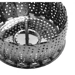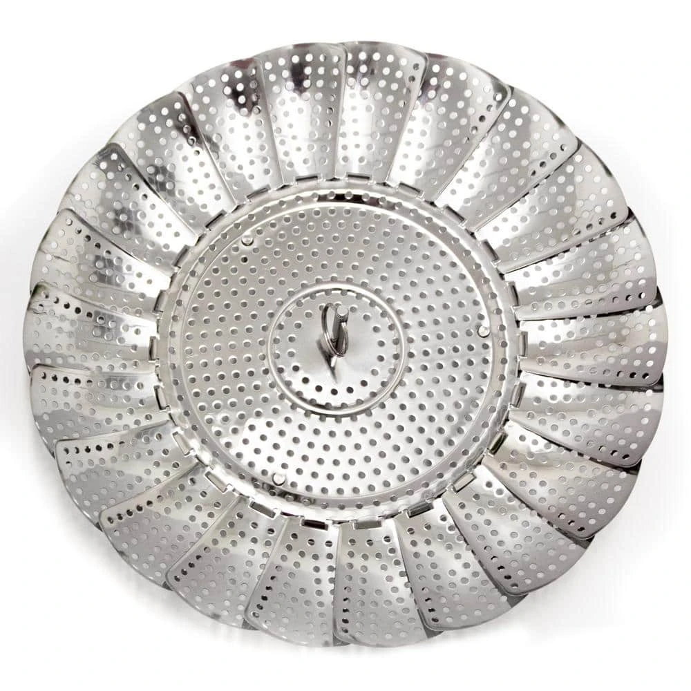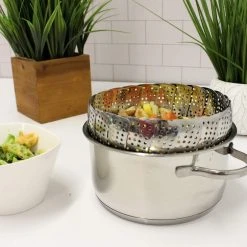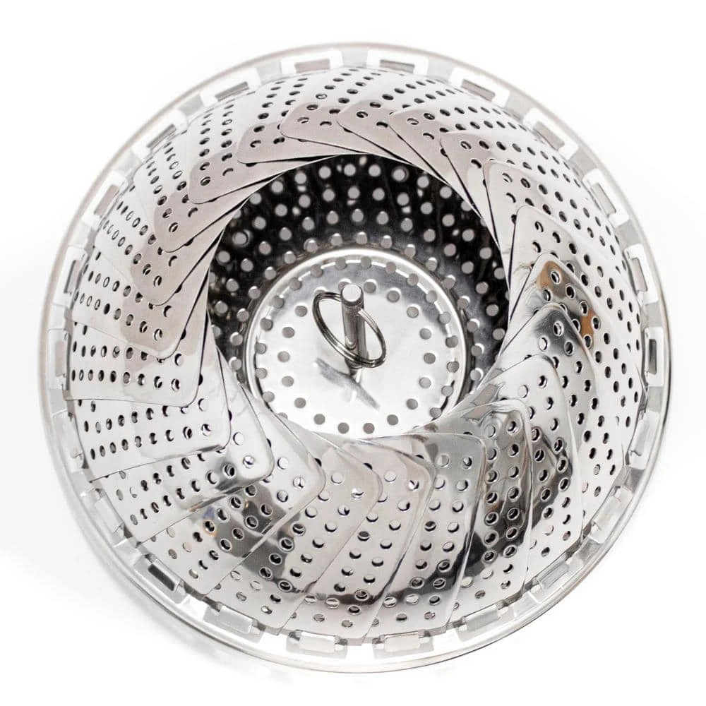 Steam vegetables and more for a healthy and delicious side for your meals. This steamer basket fits in a variety of pot sizes, and folds up for convenient, compact storage. Durable and food-safe stainless steel will not rust or react with foods.