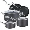 - Includes: 5 Qt. covered Dutch oven, 3 Qt. covered casserole pot, 1 Qt. and 2 Qt. covered sauce pans, and 8 in. and 9.5 in. fry pans