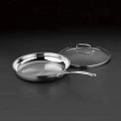 The Cuisinart 722-30H Chef’s Classic Stainless 12 in. Open Skillet with Helper Handle includes an exclusively designed aluminum encapsulated base to provide superior heat conductivity and even heat distribution to meet the demands of gourmet chefs everywhere. A solid stainless steel riveted handle stays cool on the stovetop with the helper handle providing extra support and balance when lifting and pouring. The mirror finish, classic look and professional performance of stainless steel is an investment that will prove its worth every time used. The 18/10 stainless steel cooking surface does not discolor, react with food or alter flavors and easily cleans to its original brilliant finish. The Cuisinart Chef’s Classic Stainless Cookware will give countless years of service and pleasure.