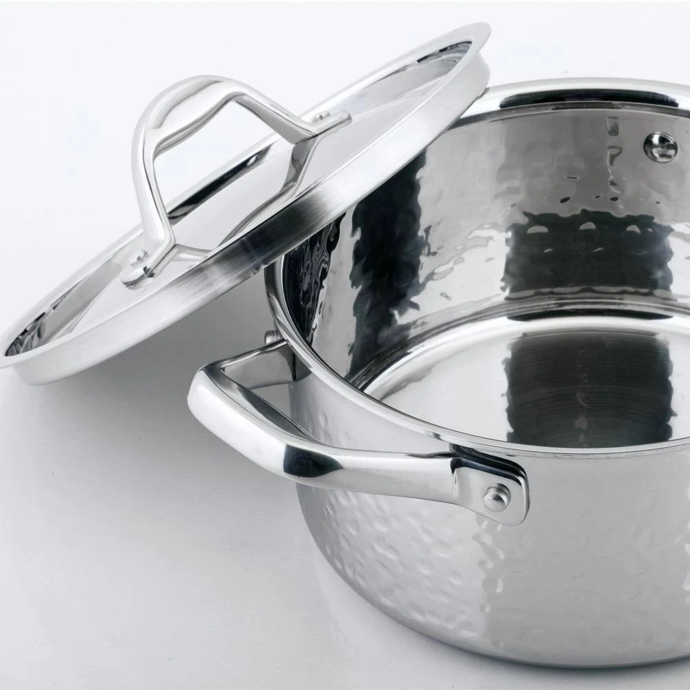 STERN cookware reflects traditional hand-hammered design that can be taken from the kitchen to the table to serve savory and nutritious meals in style. The tri-ply construction of bonded stainless steel, aluminum and heavy-gauge stainless steel allows for exceptional even and fast heat distribution. Plus, its heavy-gauge stainless steel fitted lid is designed to diminish condensation which allows for the foods to better preserve their nutrients.