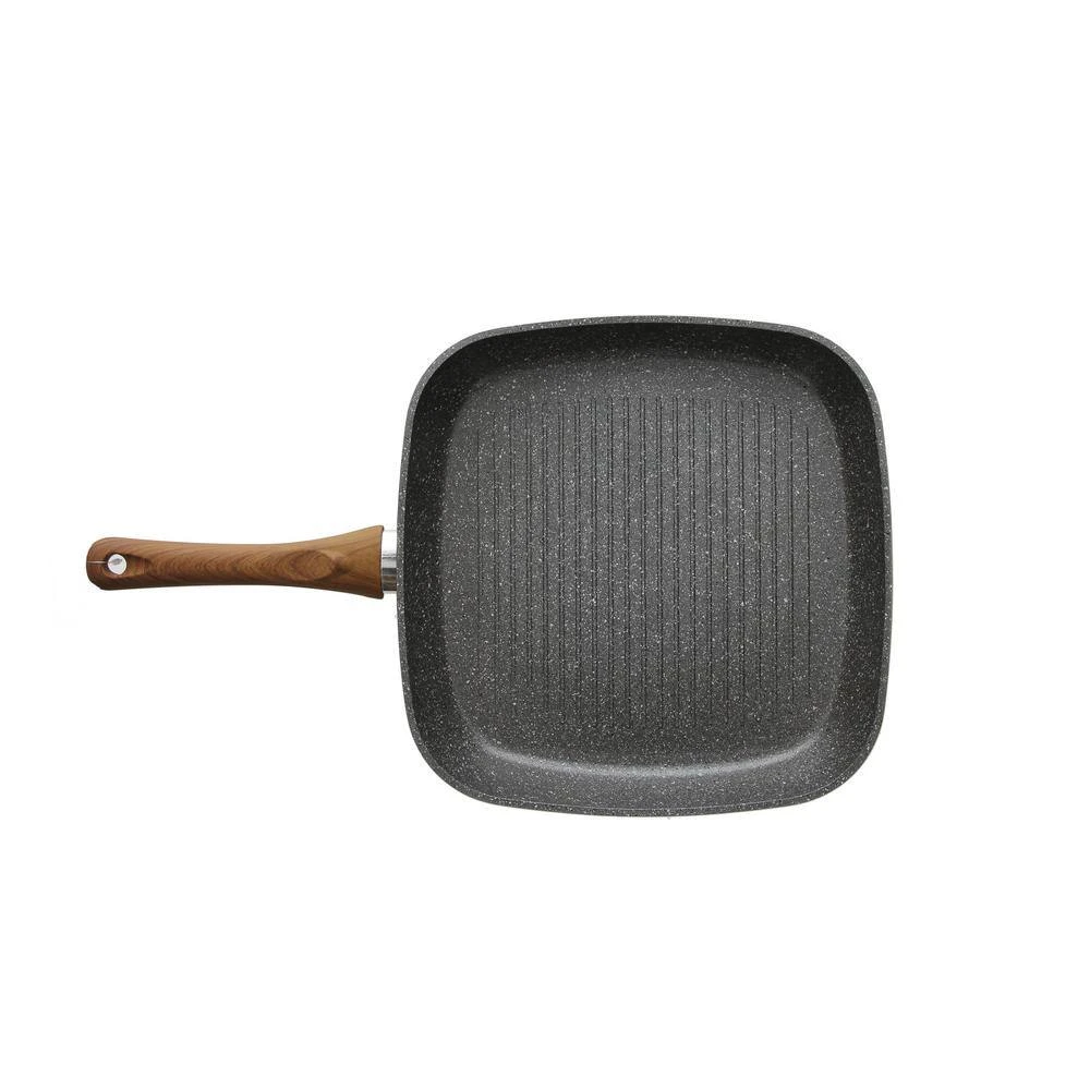 The Tognana Stone and Wood 11 in. Grill Pan is your go to pan at mealtime. It is manufactured of a forged aluminum body, allows for uniform heat distribution and has a soft touch handle. The non-stick coating is also scratch resistant and dishwasher safe. PFOA free and nickel free so you can rest assured it is a safe choice for you and your family.