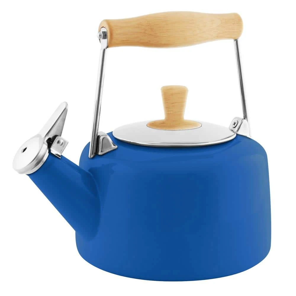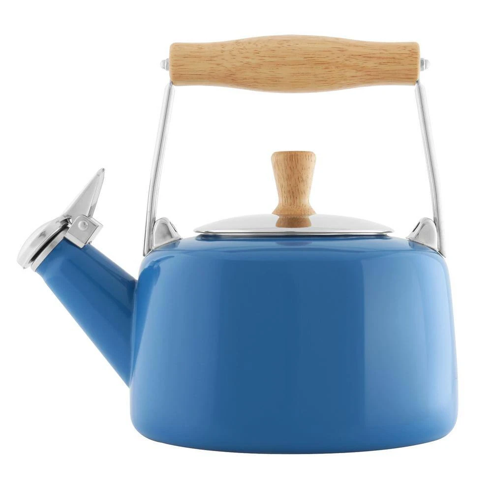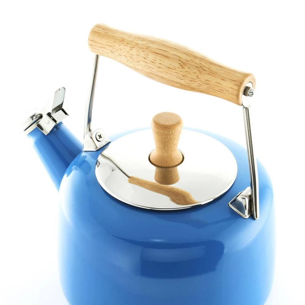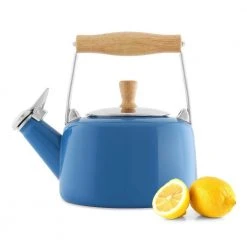 The Sven Enamel-On-Steel teakettle is part of the Chantal’s Scandinavian Collection. Clean lines and natural wood help create a design that is distinctly northern European. The blonde wood handle and knob are made of 100% natural Rubberwood, a tropical tree that grows in the warm climate of Asia. The wood stays cool to the touch when boiling water and the light color beautifully accents the enamel finish of the teakettle’s body. The perfect example of form and function. 1.4 qt. capacity.