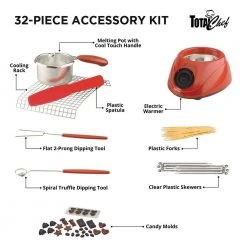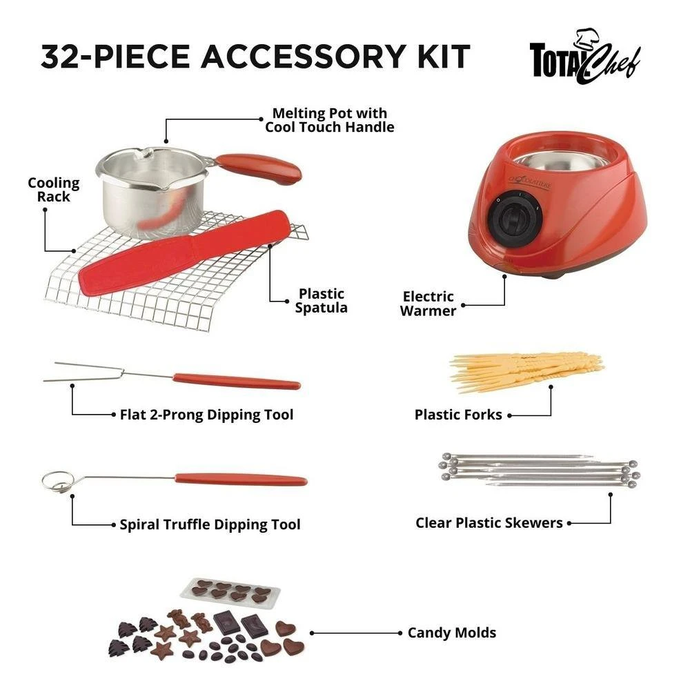 Serve a delicious chocolate fondue dessert or create a variety of homemade candies. All-in-one set includes a 1 cup melting pot and 32-piece accessory kit. Explore your creative side with this multipurpose electric chocolate melter!