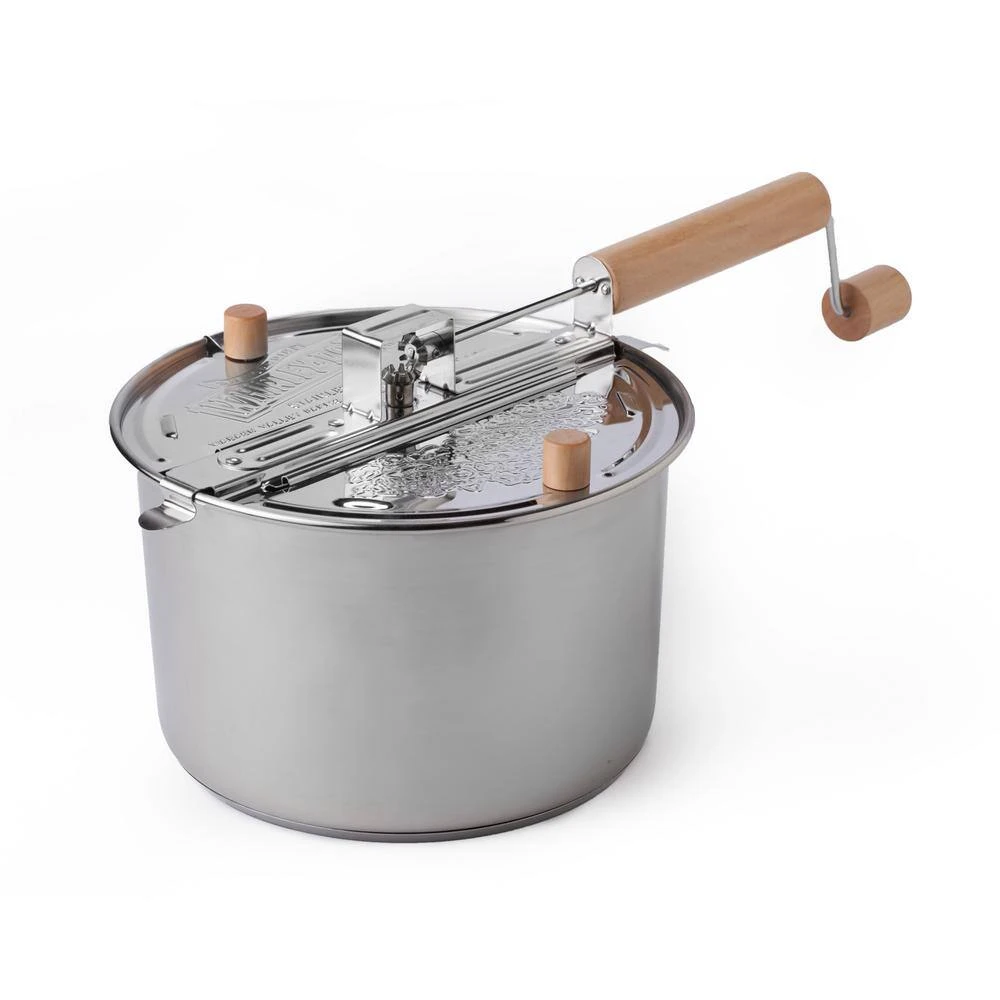 The 10-pc. Whirley-Pop Stainless Steel Starter Set makes at home popcorn easy. The induction compatible popper also works on gas and electric stove tops. It comes with everything you need for popcorn night, including popping kits and bowls.
